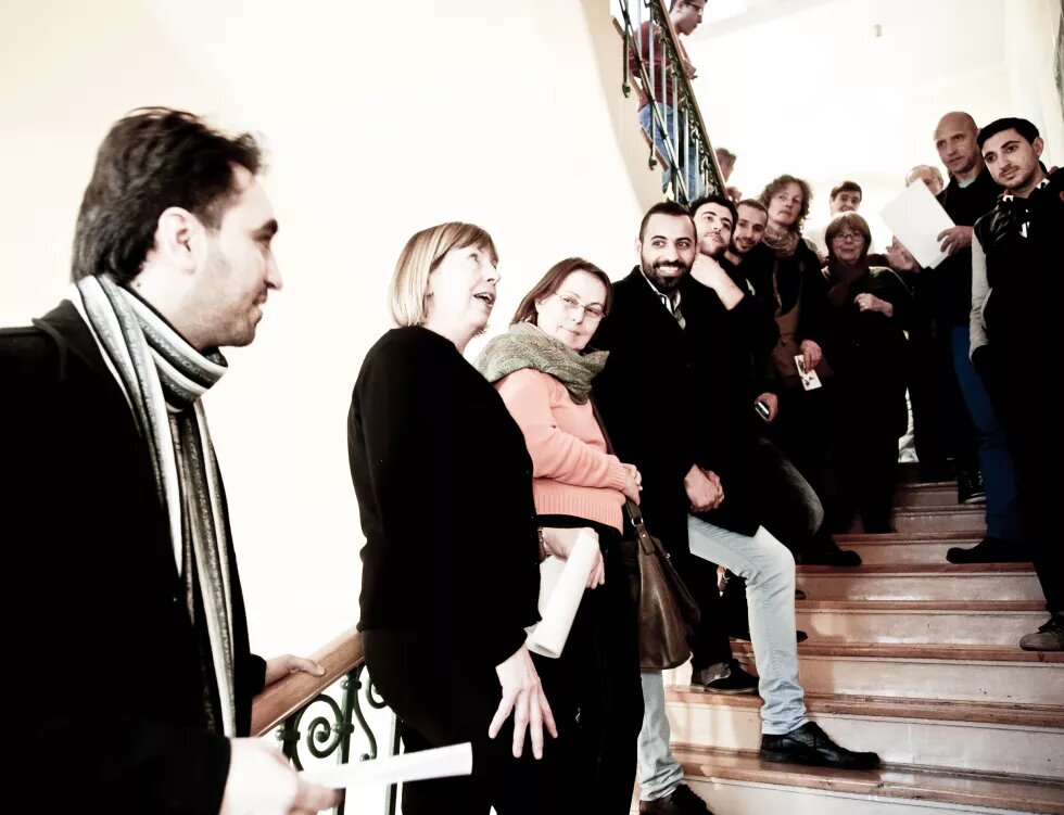 Das Ergebnis ist nun in den Treppenfluren der Stadtbibliothek Erfurt zu sehen. Am 3. März fand die Vernissage statt und lockte so viele Besucher, alte und neue ErfurterInnen, dass der Tagungsraum der Stadtbibliothek gut gefüllt war. Dr. Eberhard Kusber, der Direktor der Stadtbibliothek, der seine Gäste auf Arabisch begrüßte und damit viel Applaus und „Oh“-Rufe erntete, sagte: „Meine Mitarbeiter und ich waren sehr beeindruckt von den Fotos.“ Und nicht nur sie, denn er meinte weiter: „Die Fotos hängen seit etwa zwei bis drei Tagen und ich gehe täglich mehrmals die Treppen hinunter und wieder hinauf und habe viele Menschen beobachtet, die die Fotos sehr interessiert betrachtet haben. Das zeigt mir, dass es eine gute Idee war, diese Bilder zu machen.“