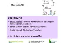 In einem Kurs, der für Kleingruppen von bis zu zehn Personen/ Haushalten konzipiert ist, erhalten die Teilnehmenden praktische Tipps zum Energieverbrauch, zum Umgang mit Ressourcen oder zur Ernährung und öffnen gedankliche Räume zum Austausch darüber, wie ein qualitätsvolles, emissionsarmes Leben entsprechend den Bedürfnissen des Einzelnen aussehen und gestaltet werden kann. Inhaltliche Kurskapitel wird es zu diesen Themen geben: Energieeffizienz (Strom und Wärme), Wasser, Ernährung, Müll/ Ressourcen, Mobilität, Finanzen. Die Kleingruppen entscheiden selbst, welche Theme sie besprechen möchten.